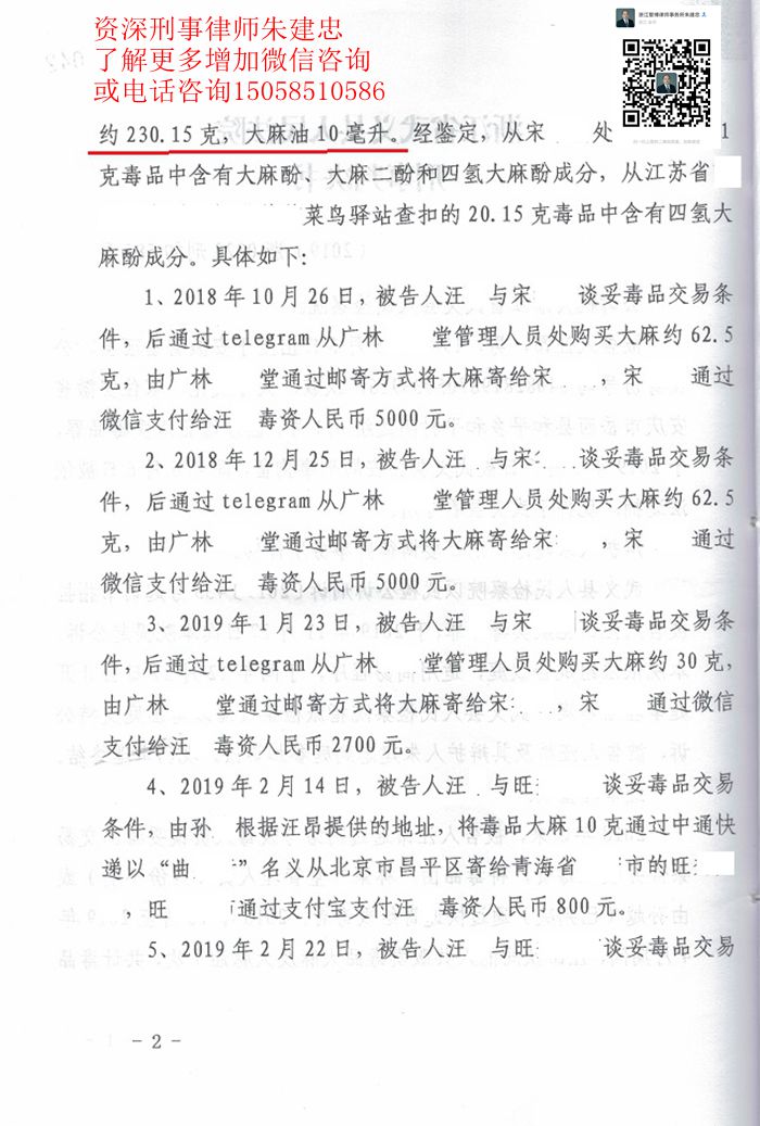 汪某贩卖毒品案件,中规中矩的判决,武义法院的判决书上说采纳了浙江婺博律师事务所主任朱建忠律师的辩护意见。