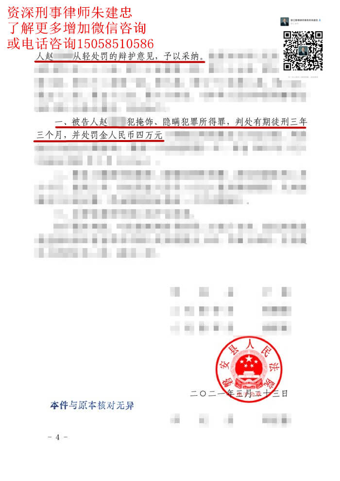 赵某为谋取利益,为他人掩饰隐瞒犯所得流水近650万,被害人被骗金额三百余万,浙江婺博律师事务所朱建忠律师担任其辩护人,在检察院和法院阶段为其提供了辩护服务,最终法院依法采纳意见,终量刑3年3个月,维护了其合法权益。