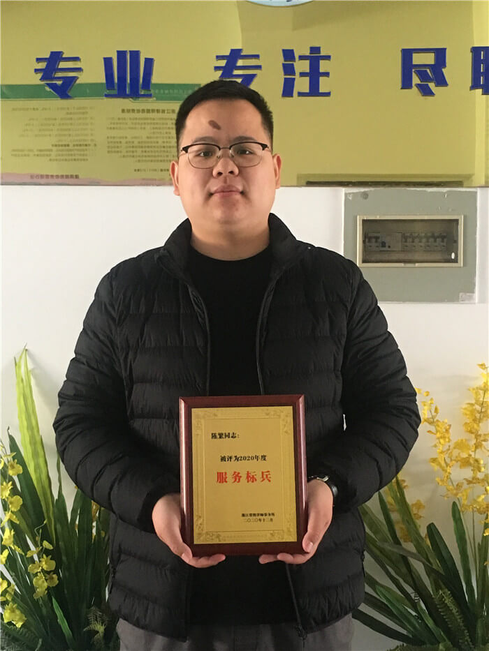 为表彰陈繁律师在2020年度律师执业活动中表现出的敬业精神、服务精神、专研精神,特颁发服务标兵荣誉证书及奖金壹仟元以资鼓励。